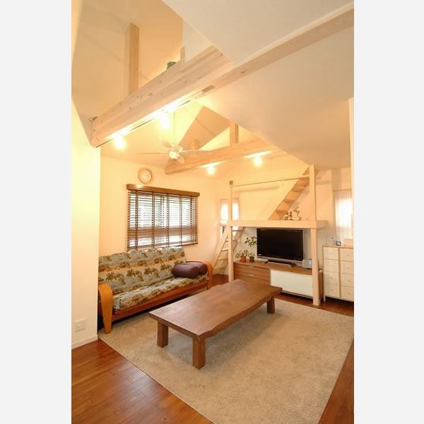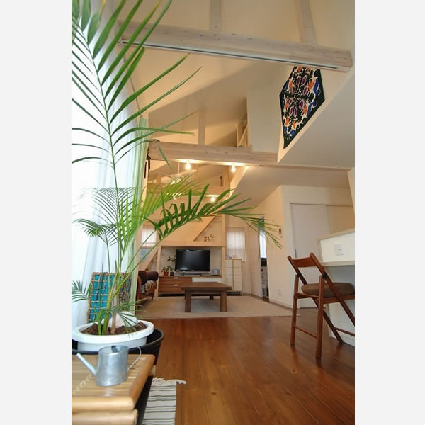 リゾート地のような家といっても、毎日過ごすのだから機能性は重要。「登りやすくないと使わなくなるから」と、ロフトには階段を設置し、踊り場まで設けました。デッドスペースになりがちな階段下には、サイズを合わせてテレビ棚をはめ込んで。引き戸で繋がった3畳の和室は、思いがけず大活躍です。「ゴロっと横になったりちょっとした荷物を置いたり、この3畳の役割が大きいんです。最初はいらないと思っていたんですが、つくってよかった」。