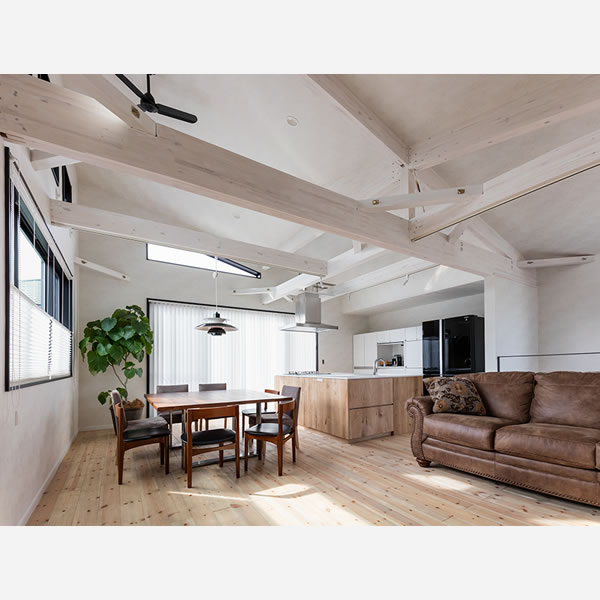 常識に縛られない遊び心あふれる住まいを手掛けたのはハウスゼロの大浦さん。「私たちがワガママを言っても決してNOとは言わず、プロの視点からこちらの希望以上の提案をしてくれました」。お気に入りは、自然素材に包まれた2階のLDKです。天気がいいと窓から富士山が見えることもあるそうで、「狙ったわけではないので嬉しいご褒美でした(笑)」とご夫妻。理想の住まいを得て、愛犬と一緒に憧れの湘南スローライフを満喫していました。